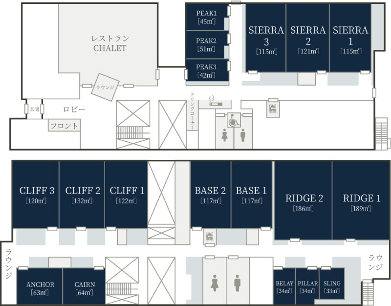 33㎡~375㎡までの豊富なバリエーションの会議室