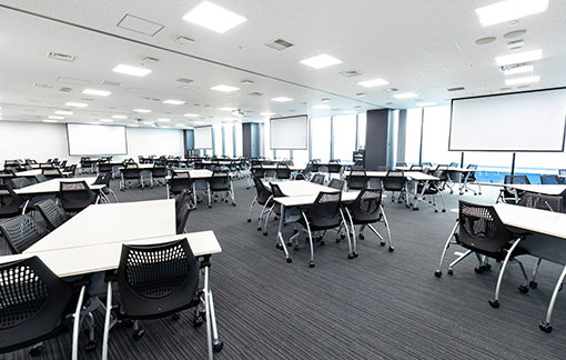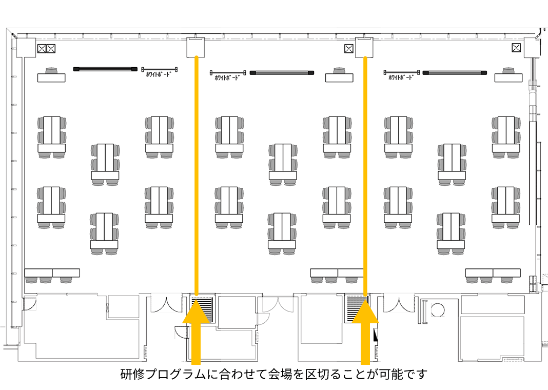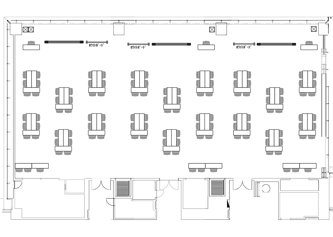 天吊りプロジェクタースクリーン×3 | 音響機材×3 | ホワイトボード×3 |