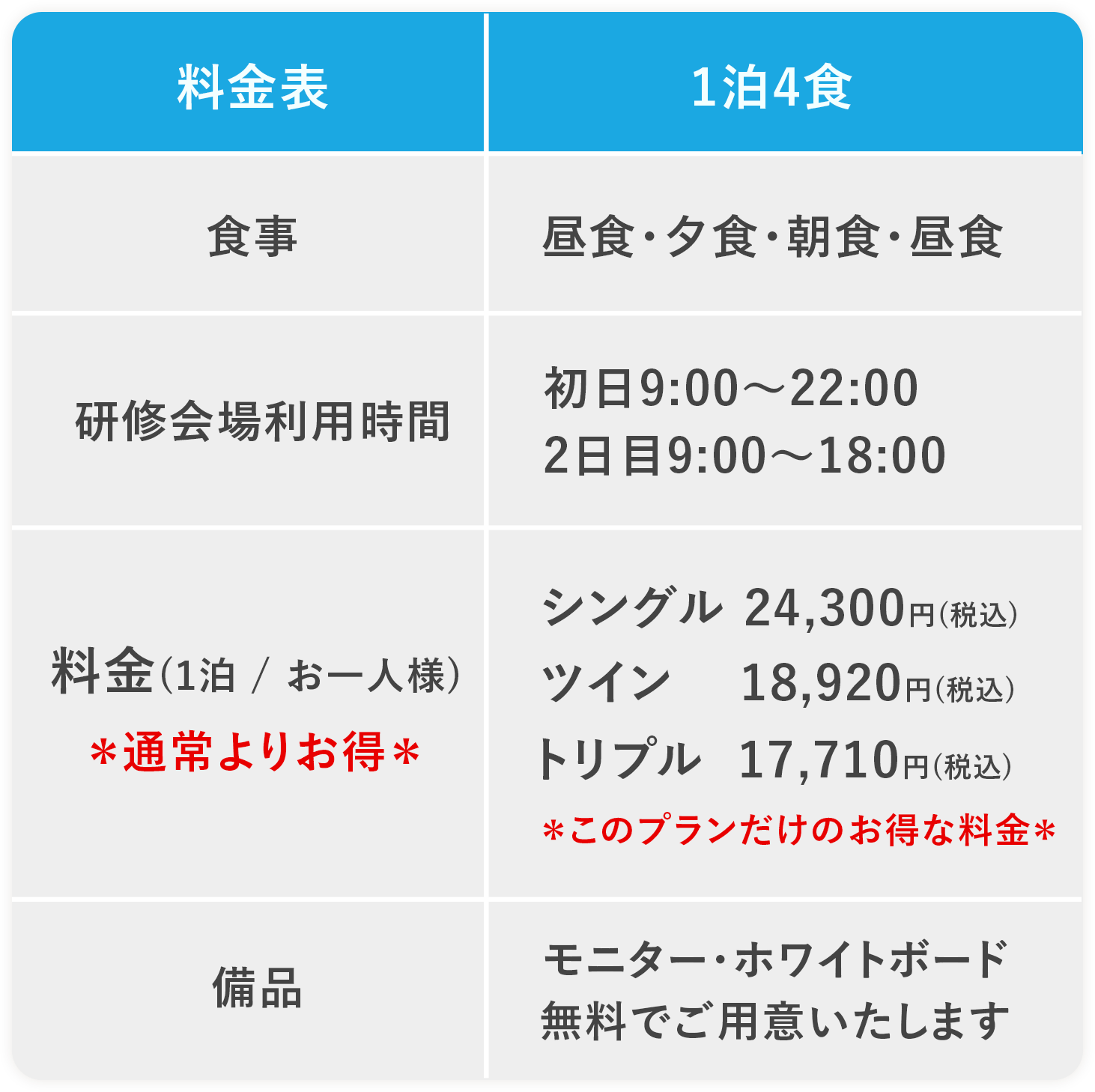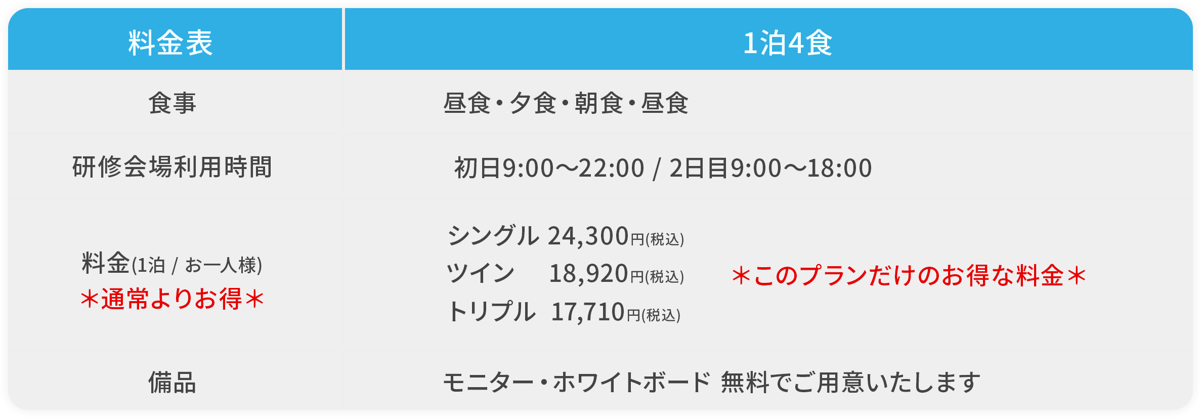 研修+宿泊+お食事 小規模会議室プラン