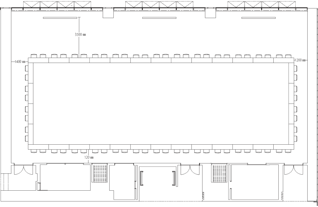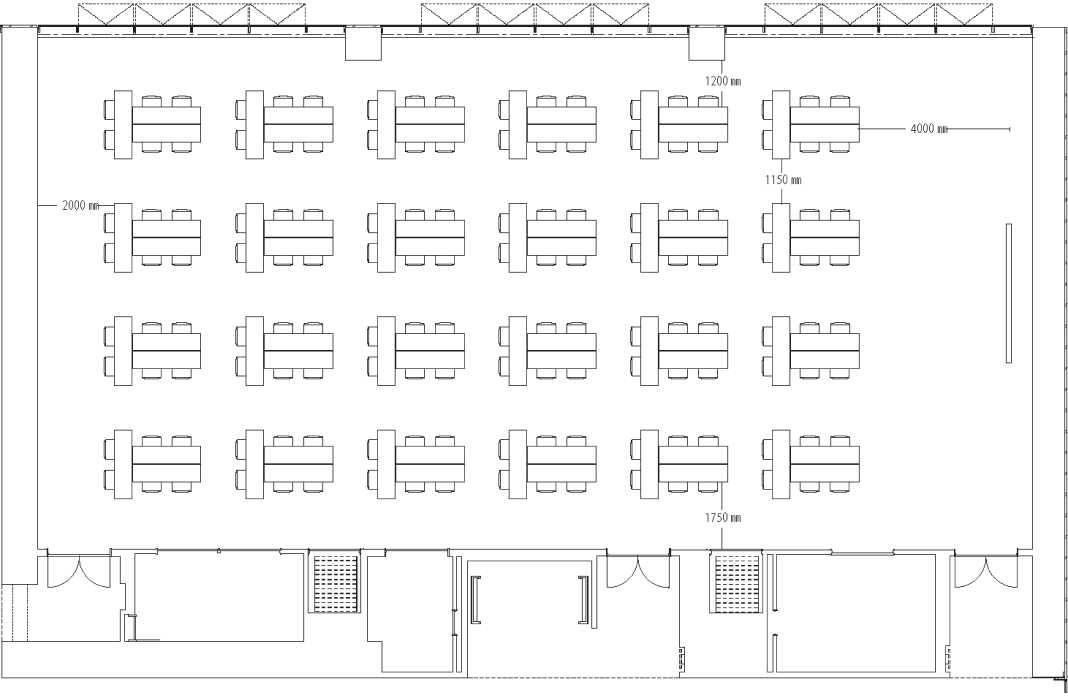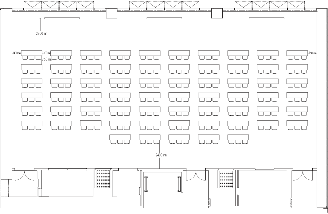 スクール形式では195席、島型では144席、ロの字型で68席の設置が可能です。
