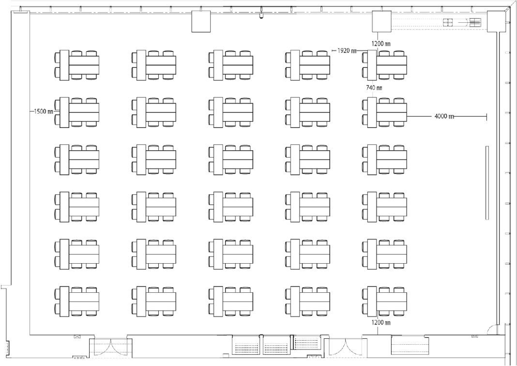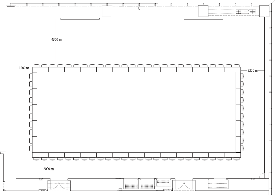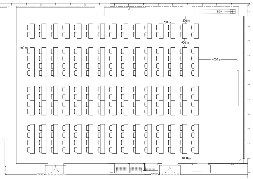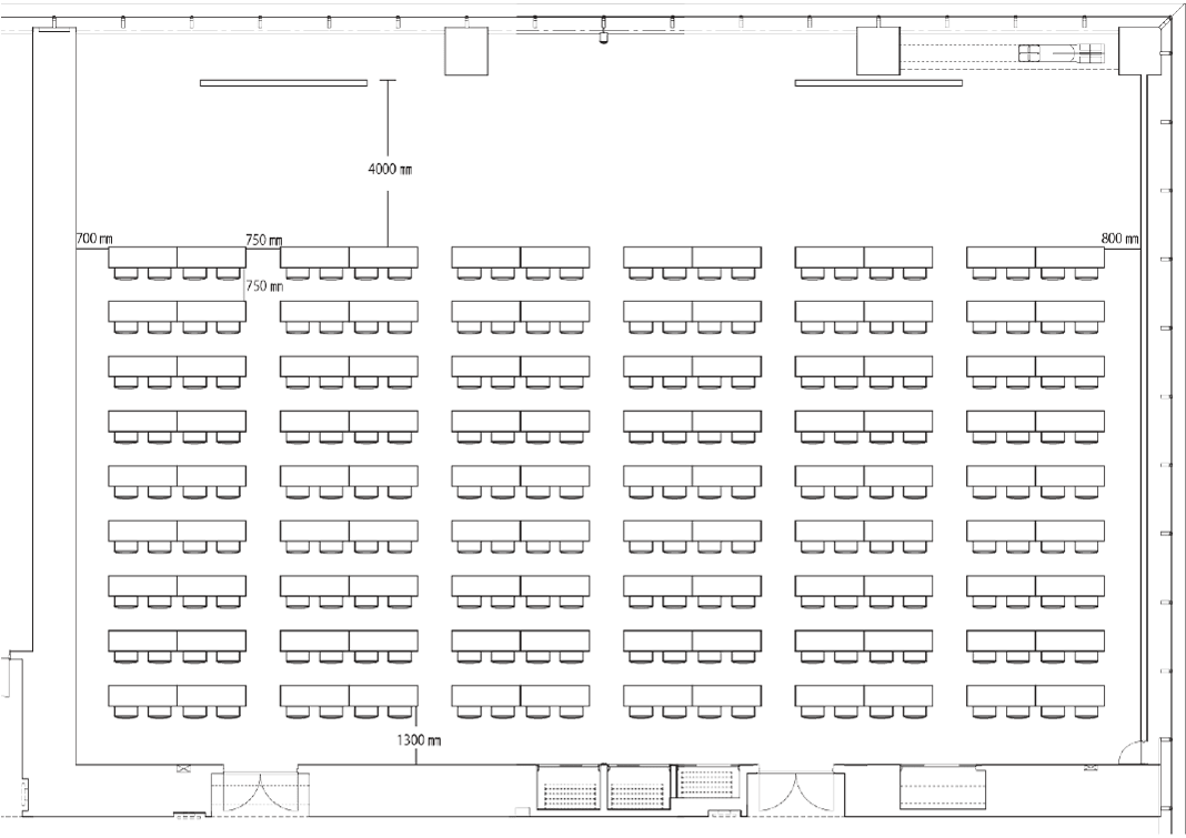 当施設で一番広い会場です。375㎡でスクール形式で216席、島型で180席、ロの字で64席の設置が可能です。