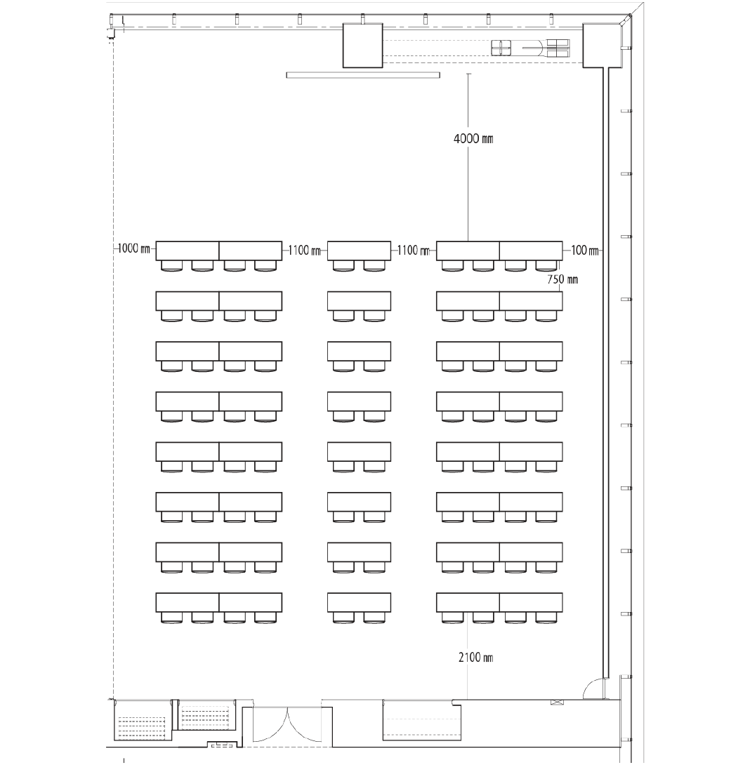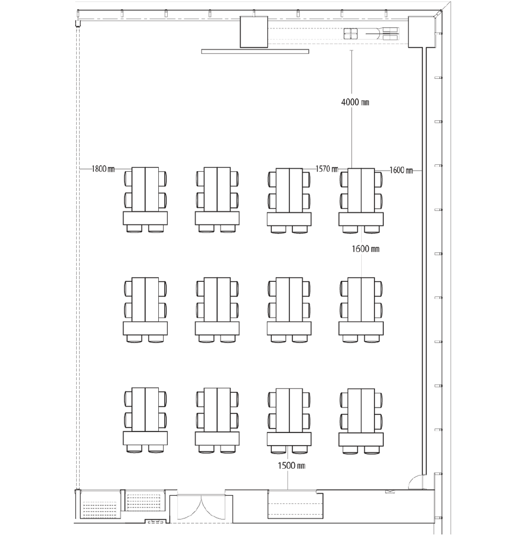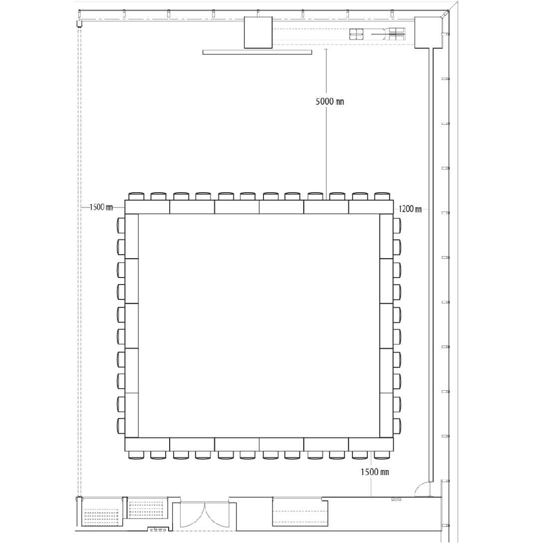 スクール形式では80席、島型では72席、ロの字型で44席の設置が可能です。