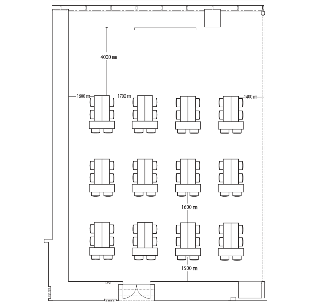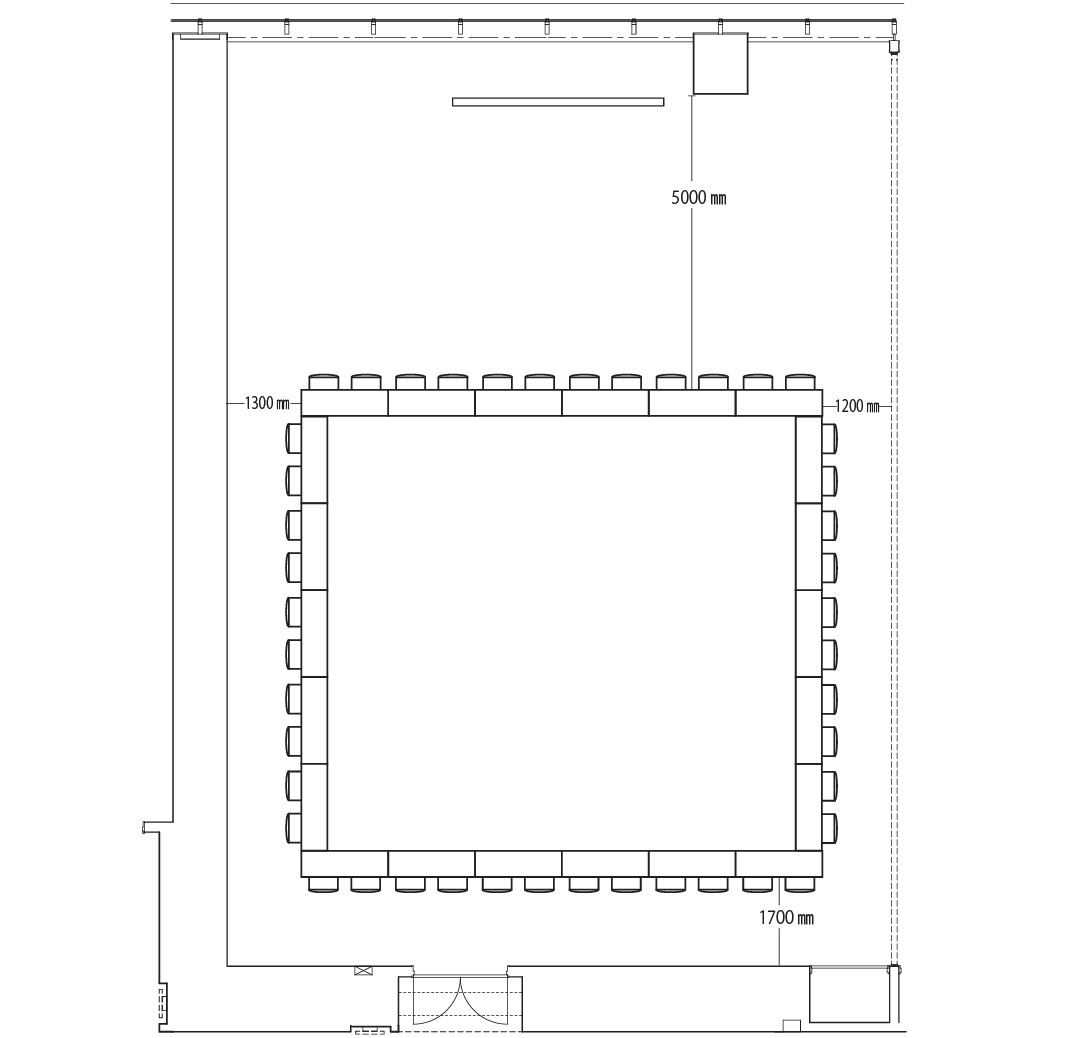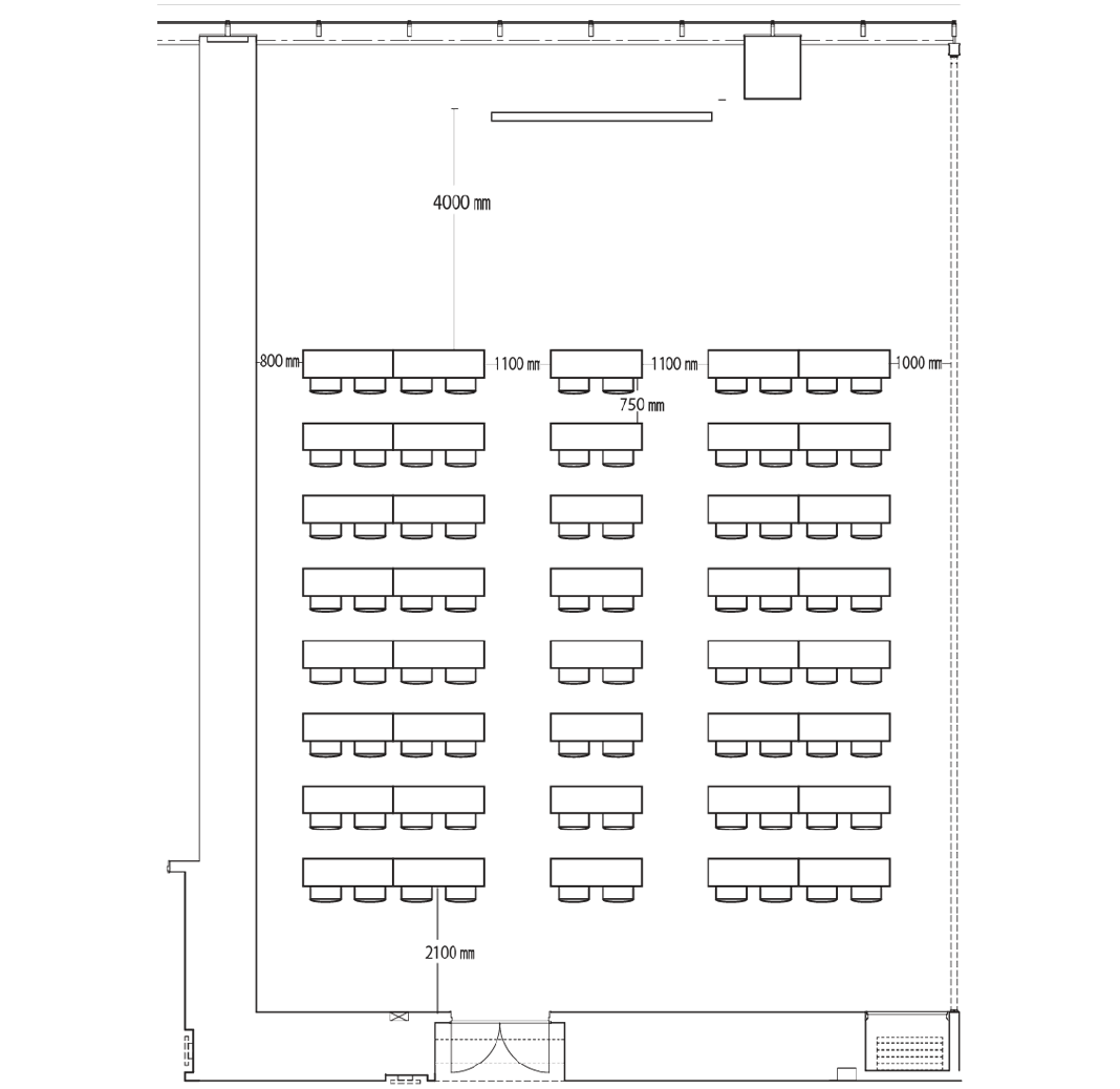 スクール形式では80席、島型では72席、ロの字型で44席の設置が可能です。