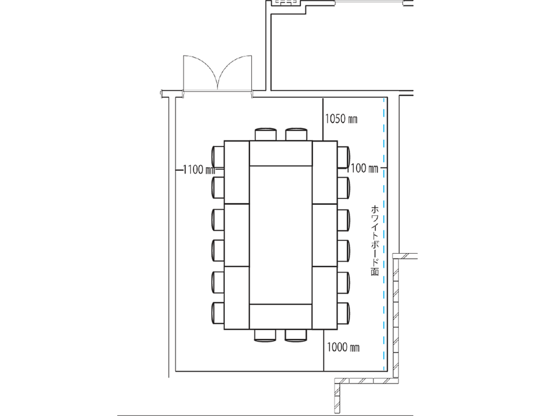 ロの字型で12席の設置が可能です。