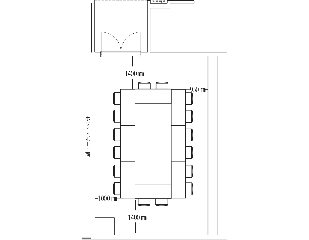 壁面にホワイトボードが常設しています。ホワイトボードはマグネットも対応しており、書くことや貼る資料が多い方に役立ちます。