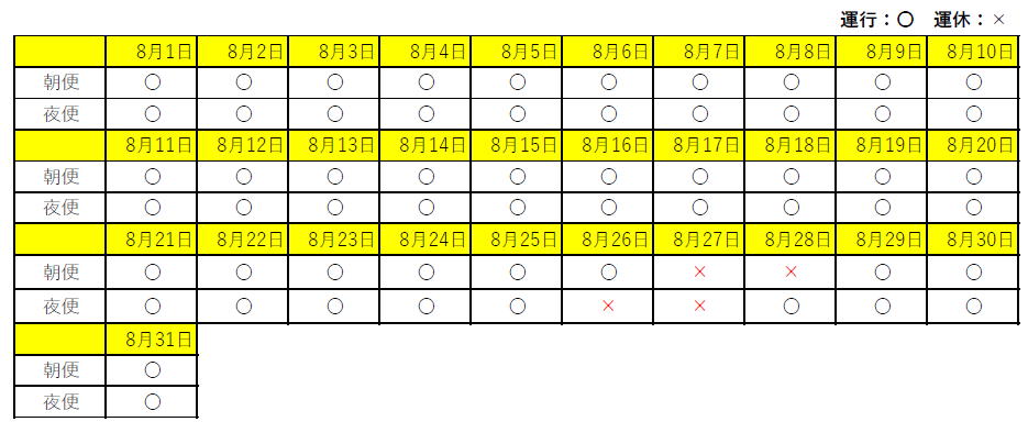 今後も運行日や運行時間が変更になる場合もございます。