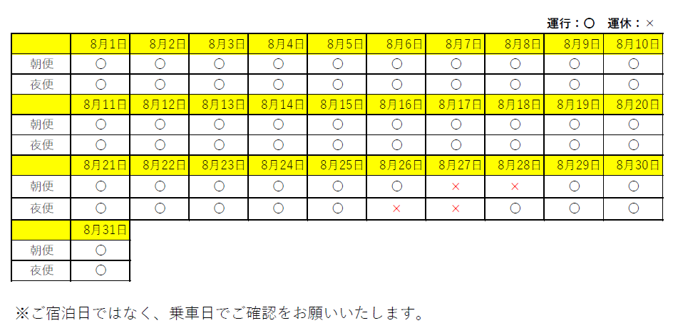 今後も運行日や運行時間が変更になる場合もございます。
